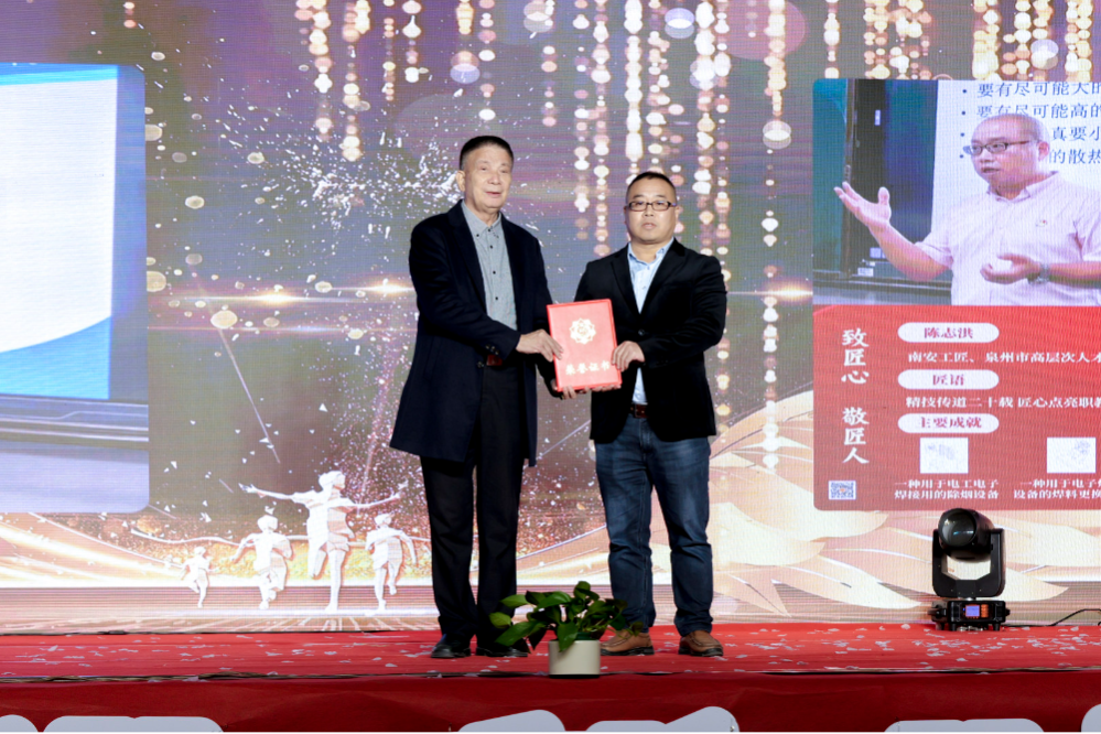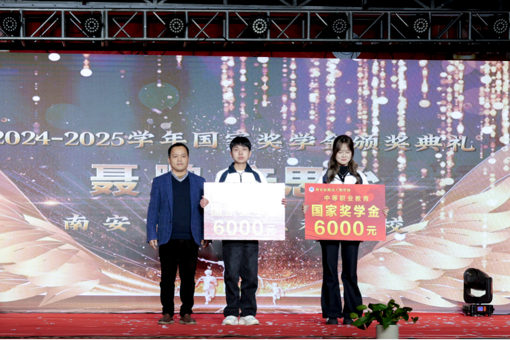 国家奖学金授予23级高三05班聂鹏、23级高三17班辛思怡,树立勤学标杆;南安工匠”荣誉颁发给陈志洪老师,致敬其二十余年深耕职教、手握十余项高级证书、带班学业水平考试通过率超98%的匠心奉献。