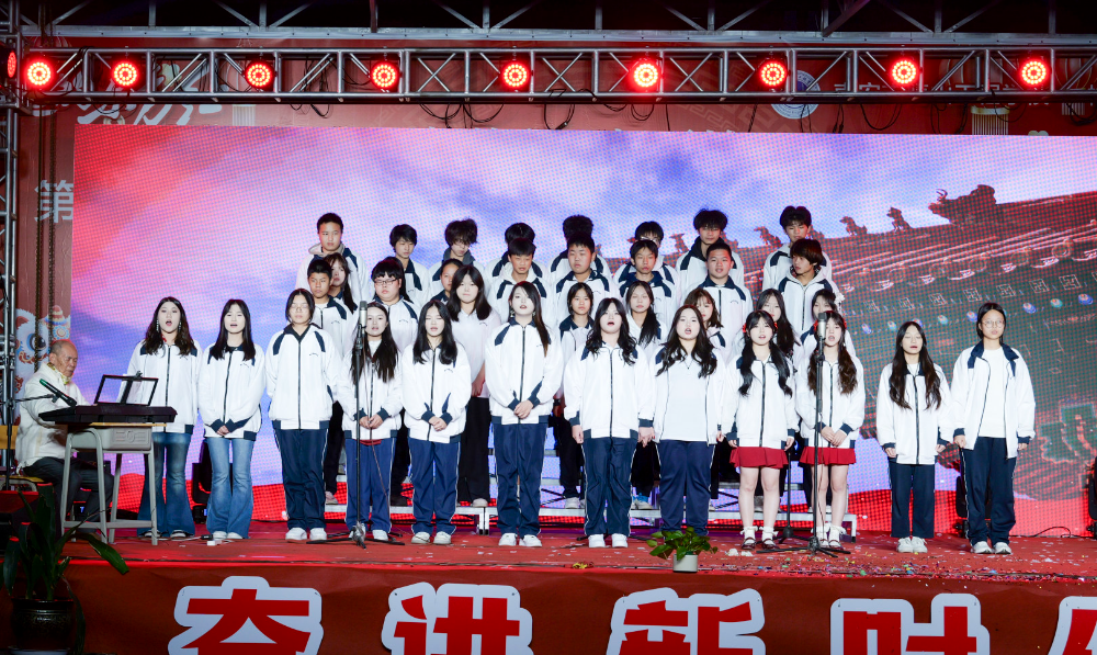 晚会在《走向复兴》的激昂合唱中圆满落幕。主持人寄语全体师生:2026年是“十五五”规划开局之年,学校将紧扣教育强国蓝图,深化产教融合、数智赋能,以敢为善为的闯劲、实干笃行的韧劲,继续书写立德树人的时代华章。