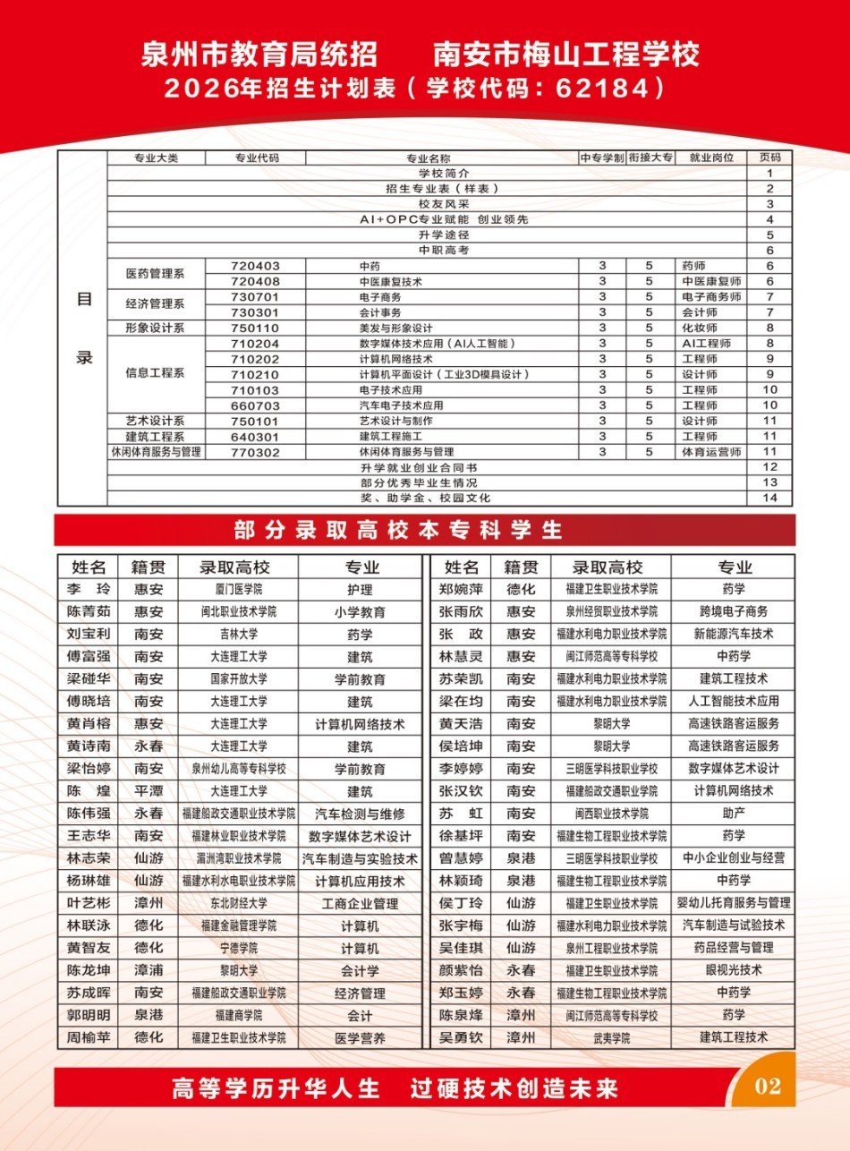 南安市梅山工程学校2026年招生宣传手册(简章)